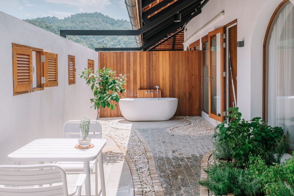 มี Bathtub ให้แช่ตัวชมวิว Outdoor กลางสวนแบบนี้ด้วย…