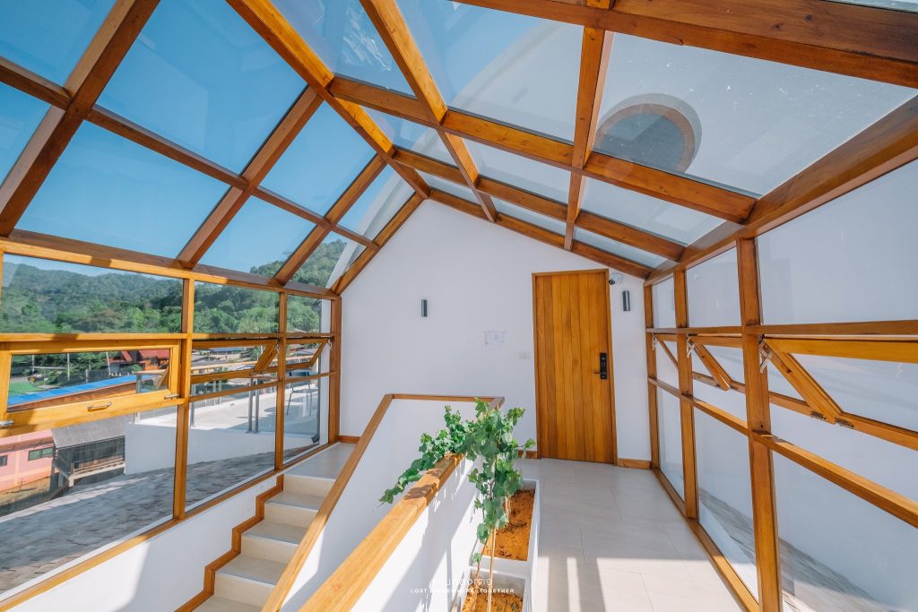 ทางขึ้นไปห้องพักชั้น 3 ทำเป็น Glass House สวยมากๆ