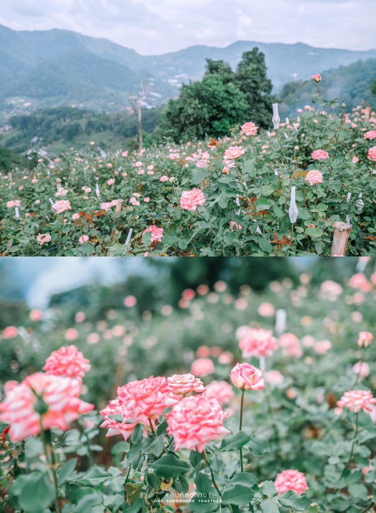 เตรียมชุด เตรียมพรอพกันมาให้พร้อม แล้วไปเดินเล่นถ่ายรูปในสวนกุหลาบกัน ซึ่งที่จุดนี้ปกติแล้วจะเป็นสวนกุหลาบที่ส่งขายไปยังปากคลองตลาดในกรุงเทพฯ เลยทีเดียว แต่จะเปิดให้เข้าเป็นพิเศษสำหรับแขกที่มาเข้าพัก 108 Villa Pong Yang เท่านั้น สามารถติดต่อกับทางที่พักให้นำเที่ยวได้เลยล่ะ