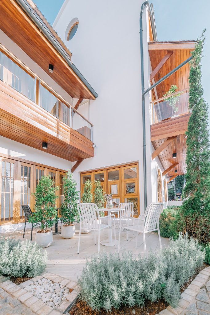 มาถึงก็สะดุดตาตั้งแต่ดีไซน์ที่พักด้านหน้าเลย สีขาวละมุน มินิมอลมากๆ