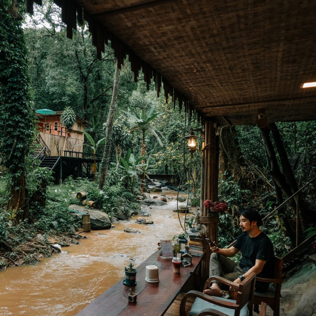 มาสัมผัสความกรีนแบบสุดๆ ในช่วงหน้าฝนของเชียงใหม่ หามุมปล่อยใจพักผ่อนไปกับธรรมชาติอันเงียบสงบกันที่ “บ้านธารชีวี” ที่นี่เป็นทั้งคาเฟ่ และโฮมสเตย์ที่อยู่กลางป่าในเชียงดาว