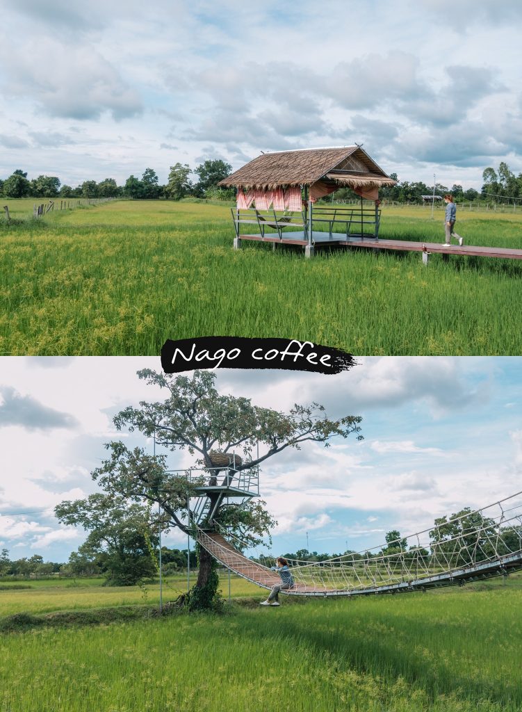 ปิดท้ายทริปนี้กันด้วยคาเฟ่ที่โลเคชั่นนั้นเด็ด และใกล้ชิดติดธรรมชาติกันแบบสุดๆ ‘Nago Coffee’ เป็นคาเฟ่กลางทุ่งนา ที่บรรยากาศดี๊ดี มีมุมให้มานั่งถ่ายรูปแบบทุ่งนารอบตัวเเบบนี้เลย