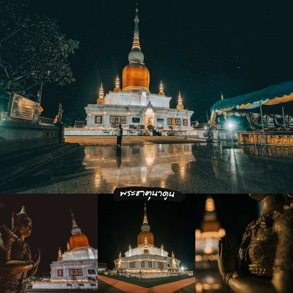 พระธาตุคู่บ้านคู่เมืองของชาวนาดูน ซึ่งหลายคนก็อาจจะเคยเห็นภาพสวยๆ ในช่วงกลางวันกันมาเยอะแล้ว ลองมาดูบรรยากาศและความสวยงามในยามค่ำคืนกันบ้าง