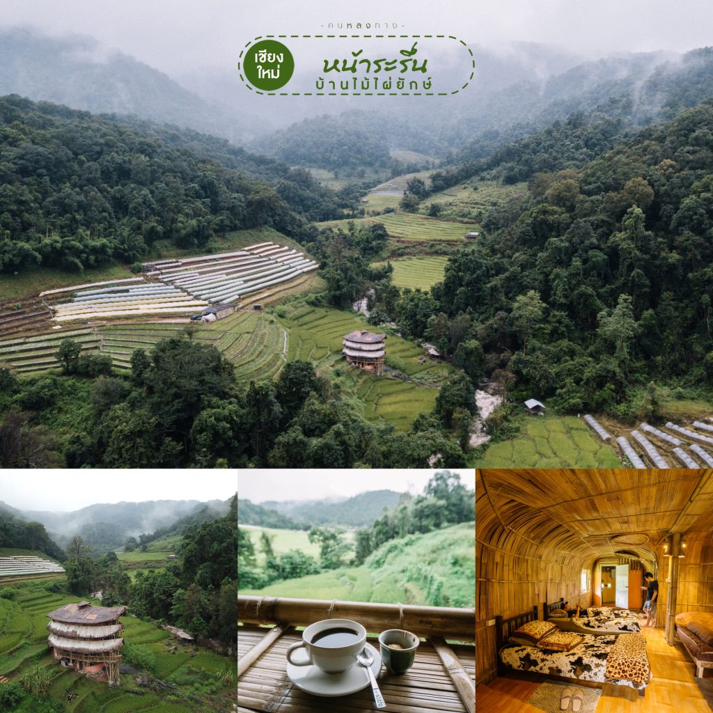 เป็นการมาเที่ยวเชียงใหม่มานอนที่บ้านพักรูปทรงแปลกหูแปลกตาใน #บ้านไม้ไผ่ยักษ์ ใจกลางความเขียวฉ่ำของทุ่งนา รายล้อมไปด้วยภูเขาทุกทิศทาง บอกไม่ถูกเลยว่า มันจะสุดๆแค่ไหน ถ้าได้มาพักผ่อนใจอยู่ในบ้านแบบนี้ บ้านไม้ไผ่กลางทุ่งนา ก่อสร้างด้วยรูปทรงที่ได้ไอเดียมาจากเรือ เป็นบ้านไม้ไผ่ 3 ชั้น ตั้งอยู่ท่ามกลางความเขียวขจีแบบสุดๆ ฟินไปโลกหน้าครับงานนี้