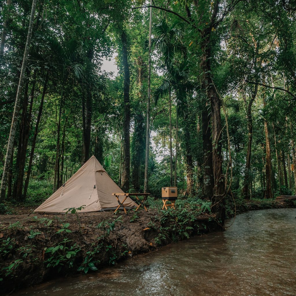 จุดกางเต็นท์เอาใจสายแคมป์ปิ้ง กับบรรยากาศริมลำธารแบบนี้ที่ ‘ไร่อุณาโลม’ ที่นี่จะอยู่ใกล้ๆ กับน้ำผุดทัพลาว บรรยากาศดี น้ำใส อากาศเย็นสบาย เราจะได้มากางเต็นท์กลางป่า รายล้อมด้วยต้นไม้สูงใหญ่