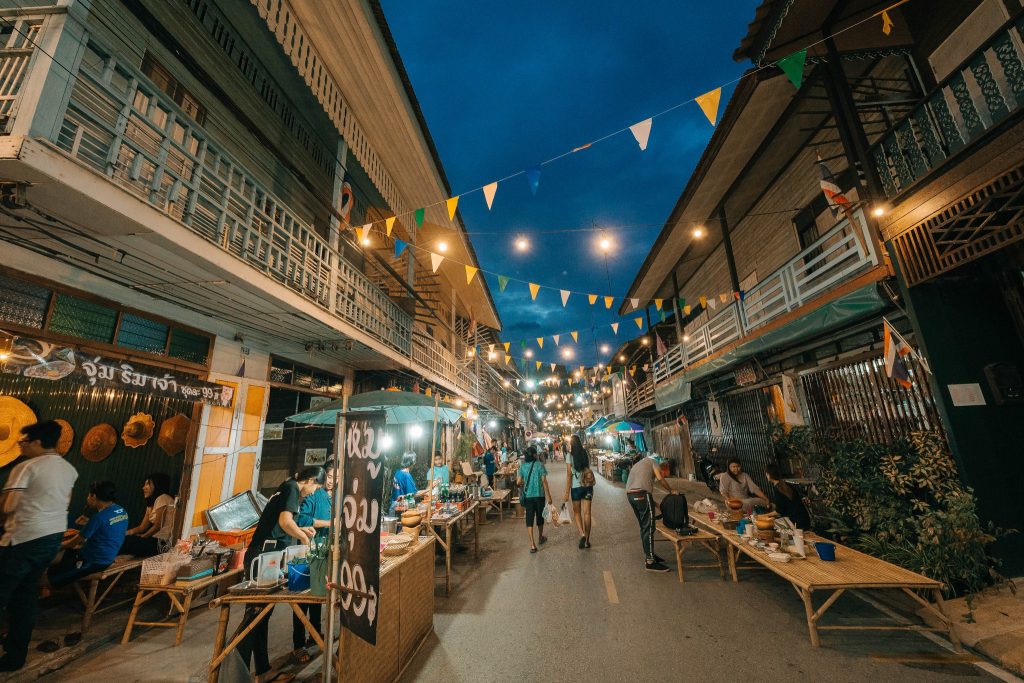 ตลาดมีทุกวันเสาร์-อาทิตย์แรกของเดือนเปิดตั้งแต่เวลา 15.00-21.00 น.