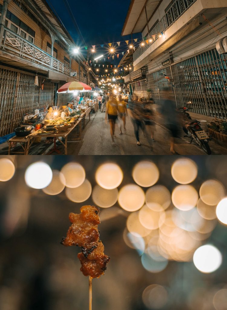 นอกจากเราจะได้มาเดินเล่นตลาดในยามค่ำคืนแล้ว ที่นี่ก็ยังมี Street art เท่ๆ ให้ได้ถ่ายรูปกัน มาหาของอร่อยๆ ไม่ว่าจะเป็นอาหารไทย หรือขนมไทยโบราณหาทานยากก็มีครับ มาเที่ยวได้ทุกเพศทุกวัย จะพาครอบครัวไปก็ดี๊ดี